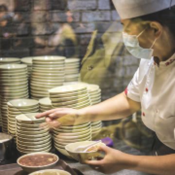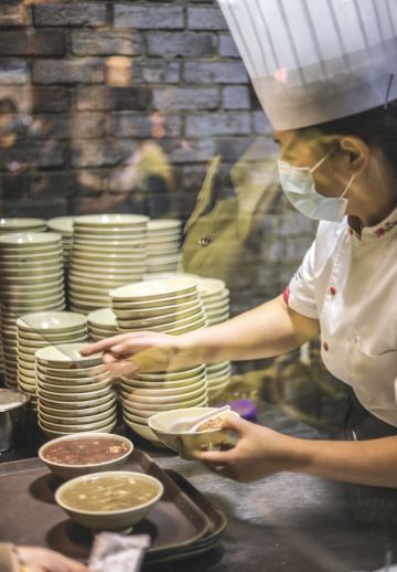 主营煎包和茶汤,如今也有各种卤味、凉菜
