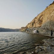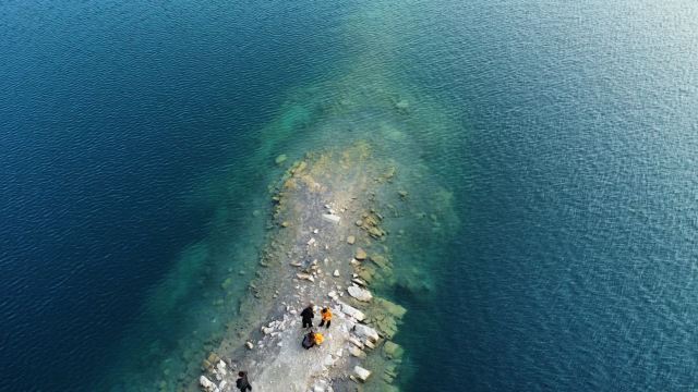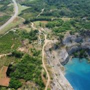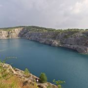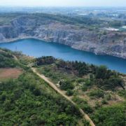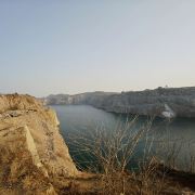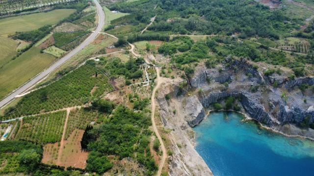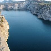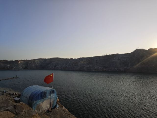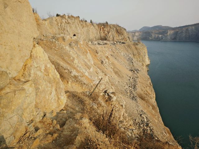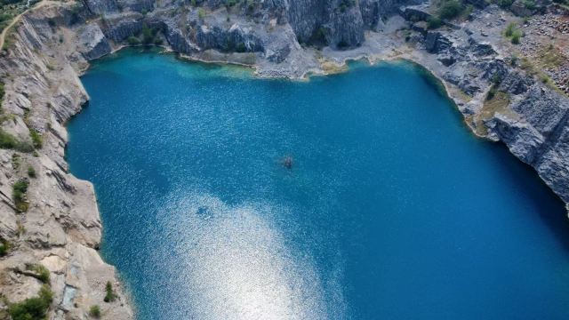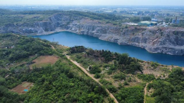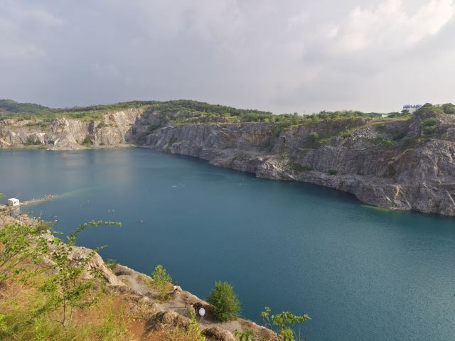 占地面积约为3.5平方公里,其前身为废弃的矿山开采地,后因常年雨水累积形成湖泊。该湖水呈蓝色,周边为悬崖峭壁。