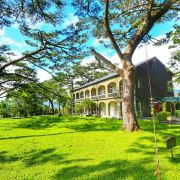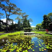 别馆内非常有名的是琉球松,日本人当时种了百余株,形成非常茂密的小森林,后因台风和病虫害,仅剩30余株老松树屹立于此。别馆的1、2楼是室内艺术展示空间,后方还有一处凉亭供民众休息纳凉,你可以在园区内随意走走,俯览花莲壮阔的海景,十分惬意。