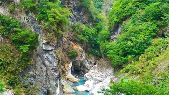 水濂洞是太鲁阁国家公园里的一处景点,它位于天祥西侧。从白杨步道入口往里走约半个多小时,先是看到美丽的白杨瀑布,然后再继续前行几分钟到一处隧道,可见山泉从上方倾流而下,形成了这道水帘洞(水濂洞)景观。