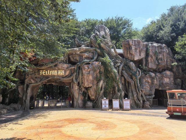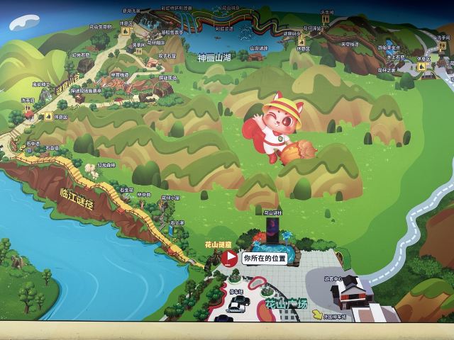 花山世界主题园区位于黄山市屯溪区,距中心城区10公里,总面积约为1200亩,园区以松鼠“花仔”为形象IP,以主题夜游为特色,通过科技赋能,巧妙将文化、科技、艺术与自然山水、千年谜窟进行融合,是一处集主题化、休闲化、科技化于一体的沉浸式智慧旅游园区。