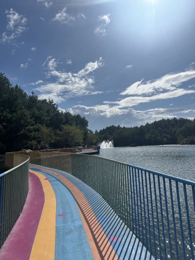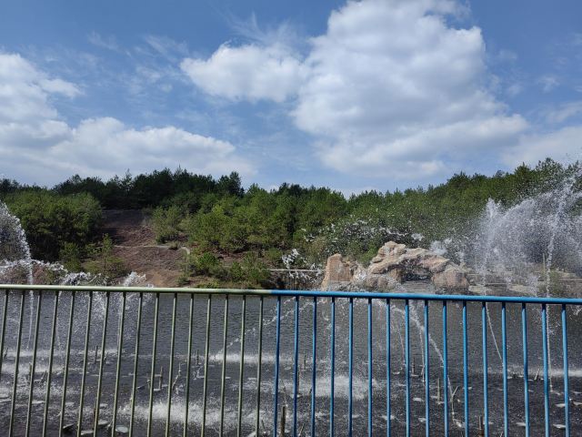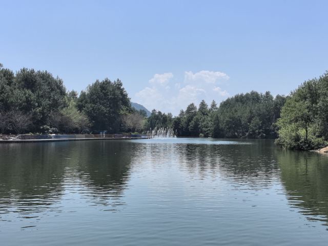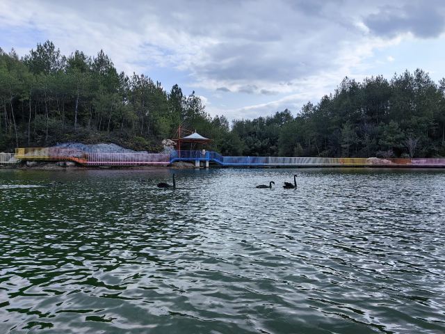 神画山湖由彩虹栈道、山湖谜踪、花山喊泉组成。小径幽幽,翠柏挺立;湖水粼粼,天鹅缱绻。入夜,水舞光影,秀花山四季,演花山传奇。