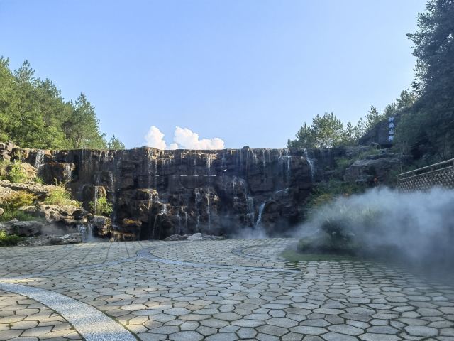 花山广场设计以梵高的画作——《星空》为原型,总面积达2.3万平方米,相当于3个足球场大小。为方便游客游览体验,广场设置了停车场、游客中心、喷泉、花山谜柱等设施。