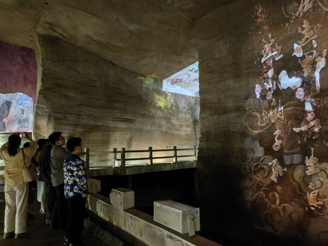 2.探谜现场:面积12600平方米,是以原始石窟为舞台,以声光电科技为手段,以原创故事为核心,以动态观影为方式的大型沉浸式洞窟展演。