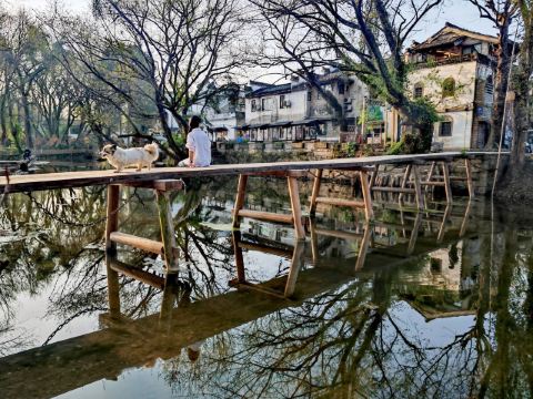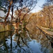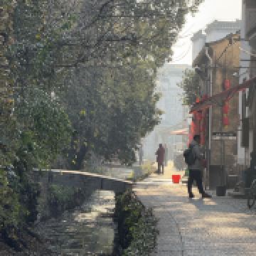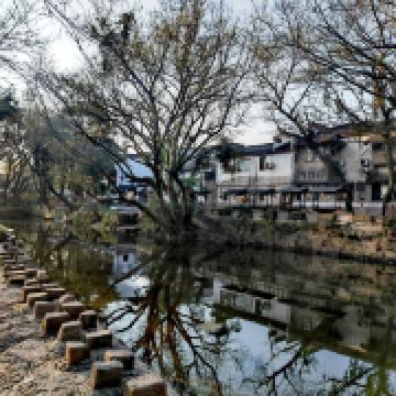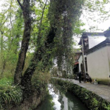 西溪南古村落村口有一片湿地和枫杨林,一条小溪环绕古村缓缓流淌,给人以无限的遐想。