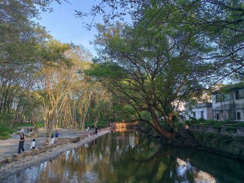 西溪南的枫杨林湿地,是徽州古村落“水口园林”的活态标本。村口的丰乐河以自然之力引水入村,形成“山-水-林”三位一体的生态格局。古银杏、青苔石板与溪流共同编织出唐宋水利工程的智慧——这里没有刻意雕琢的园林,只有自然与人文共生的野性美。清晨薄雾中,阳光穿透枫杨枝叶洒向溪面,仿佛走进《千里江山图》的青绿画卷。