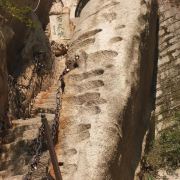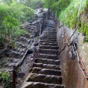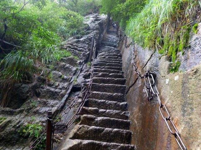 5分 超棒也叫“百丈崖”,这里山体峭陡壁立、四方如削,有石阶,须挽铁索而上。