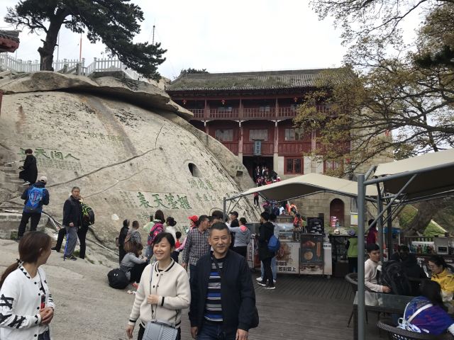 4分 满意翠云宫也叫西峰大殿,以前被火烧毁过,现在的是重建的,翠云宫可能也和华山其他山峰一样,由于平整的地方太少了,房屋都建的不多,上了进门石梯就是一个院子,穿过去就是西峰了。在院子里就可以看到斧劈石了,就是最后一张照片。