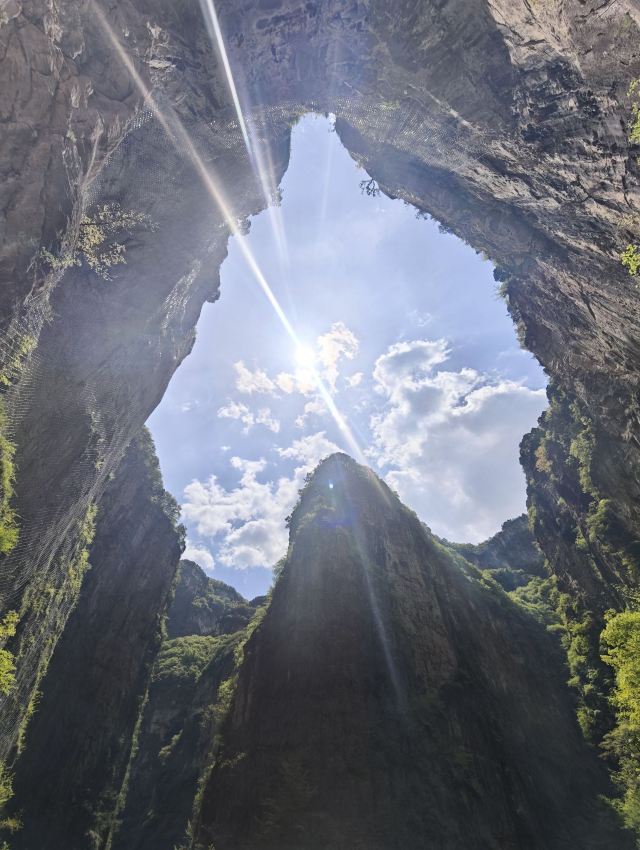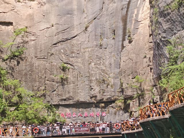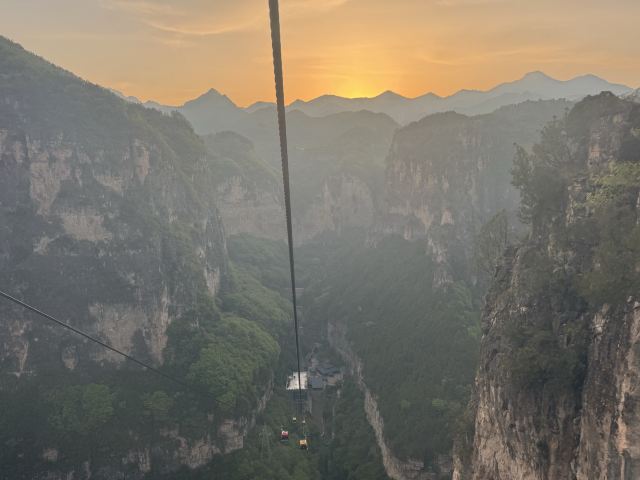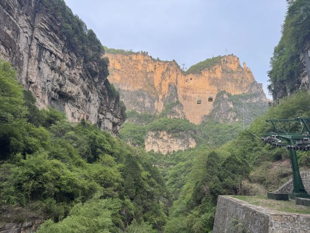 5分 超棒景色不错,值得游玩!景区分了A、B线,我买的是B线套票(包含门票、电梯、索道、游船),观光车直接拉到电梯,然后爬小段山路,坐空中巴士(需另付20元/人,套票不含此费用,体力好可以爬上去,听说40分钟)玉皇顶,山顶有些小吃。再往上爬几分钟,可以到玉皇宫,上面分三个宫供奉了玉皇大帝、娘娘和财神,其中财神庙有三个,关羽、赵公明,还一个不认识。玉皇顶再稍走一段平路就是索道,索道在数座山峰之间起起伏伏,在数百米高空上俯看太行山,还是很壮观,总长可能有3-4公里,中间还有个转弯。下索道之后就是1900米的峡谷,一路顺着山溪下山,沿途风景不错,最后到达心形峡谷,乘游船到达一个水坝,上水坝再走近1公里的隧道,出口上观光车,下到景区门口。A线就是反过来的路线。B线峡谷步行是下山,省体力但是伤膝盖,各位可以考虑自己情况。美中不足是,我们有个孩子要买半价学生票,只能现在现场买,结果排队时一片混乱三个队排两个窗口,后来有个窗口又不卖了,变成三队排一个窗口,想网上买全票时又发现要2小时后才能出票验证。花了超过半小时才买到票,太浪费时间。进门时,大太阳下几十个人排队验票,但仍然只有一个人验票,搞得所有人晒太阳。