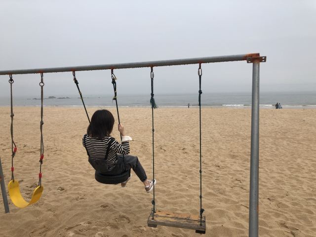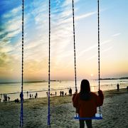 3.就在假日酒店的后面有秋千,还有其他的道具,都可以用来打卡,这也是我不在古城墙上看日落的原因所在