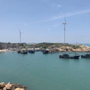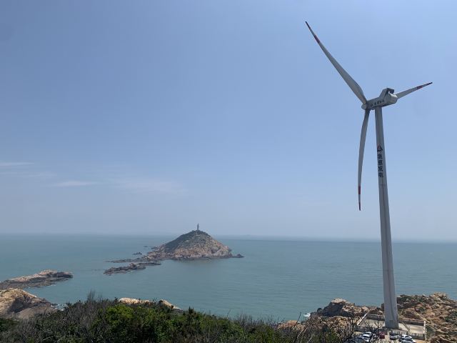 蓝色的大海、白色的风车、金色的沙滩、金色的岩石,色彩鲜艳纯净。位于福建泉州市惠安县小岞镇的风车岛三面环海,景色迷人,国庆黄金周期间吸引了不少游客前来观光游玩。这里还有泉州的“陆域东极”,每天泉州的第一缕阳光从这里照亮。