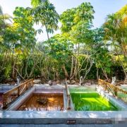 海滨温泉度假区的泉水来自深海的地热之泉,水质微咸,泉水清澈、透明、爽滑,富含氯化钠、偏硅酸、硫、铁等40多种有益人体健康的矿物质元素,是“三料合一”的珍稀温泉。