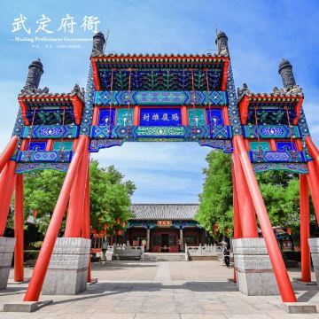 武定府衙景区座落于惠民县城北部,主要建筑包括中路的大门、仪门、德政堂、退思堂、昌华堂、怡然堂,展示知府判案和明代汉王及家眷的后宫生活场景。