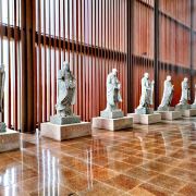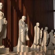 中国.睢宁水月禅寺(始称浮屠寺)则位于睢宁西郊碧波荡漾的水月湖畔,寺院占地300余亩,现为国家AAAA级景区。该寺始建于东汉末年,几经战火,历尽劫难,代有兴衰。禅寺于2011年4月重建,2013年10竣工,禅寺建设以“得风润水,古典布局;简约建筑,禅意空间”的规划理念为核心,建筑格调独具匠心,颠覆了人们对于佛教建筑固定的思维模式,设计将佛教元素与建筑艺术达到了完美结合,表现手法较为独特,功能和布局更为合理,实现了佛教元素与现代建筑艺术的完美结合,创造出国内独具匠心的佛教活动场所。因寺院周边临水,又因佛学所称因、果、圆、缺的信仰似月亮,且寺庙突出是水月观音文化,故寺院命名为“水月禅寺”。2015年11月,在新加坡举行的世界建筑节(World Architecture Festival)被评为全球九大宗教建筑之一。