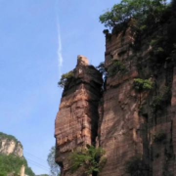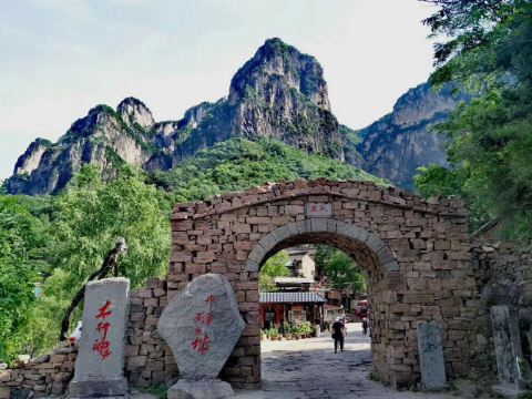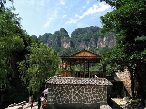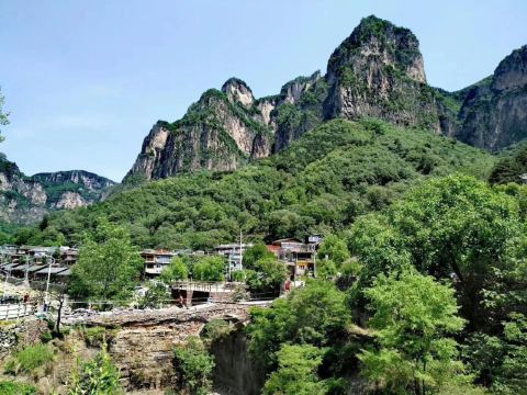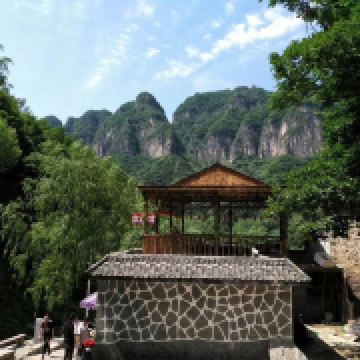 中华影视村-郭亮村是万仙山景区的核心景点,这里山势独特、谷幽崖高,村子还还可见到原汁原味的石桌、石凳、石墙、石炕等,房屋依山而建,高悬在壁立千仞的石崖之上,魅力四射,被称为“太行明珠”。通往郭亮村的路上便可见到令人惊叹的绝壁长廊,车行其中,一边是石壁,一边是悬崖,惊险万分。过了重重险路,便可见到景色宜人的郭亮村,和那立于山顶的崖上人家,充满了浓郁的乡土风情,这里也是众多影视剧喜欢的拍摄地点,拍摄过《清凉寺的钟声》、《倒霉大叔的婚事》、《举起手来》等四十多部影视剧。村中的炮楼也是当初拍摄《举起手来》而修建的,建在悬崖边上,地理位置险要,站在旁边的观景台上可俯视山门,村里的房屋亦是清晰可见。