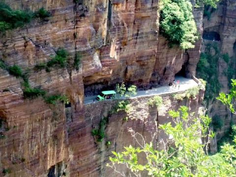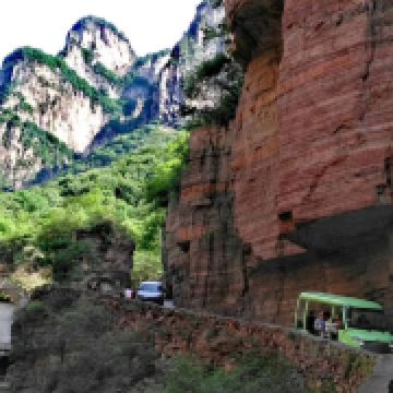 太行山大峡谷中共有六条挂壁公路,其中数郭亮村到王莽岭的“昆山隧道"最为壮观(郭亮村到王莽岭最近的一条路),历经30年,人工开凿了一条由山西陵川王莽岭通往河南辉县郭亮的挂壁公路。