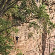 河南宝泉旅游区-宝泉崖天下景区,以崖惊天下,万丈红绫、百里赤壁,如屏如画。徒步丹崖天路,感受移步易景;寻觅太行之心,尽览驼峰奇观;俯瞰游龙湾,探秘中国曲峡;仰望峰峦叠嶂,叹止鬼斧神工;悬崖过山车、悬崖蹦极、悬崖攀岩、悬崖秋千、挂壁栈道和悬崖宿集等惊险刺激的悬崖体验项目,成就一段“天下惊崖”之旅。