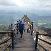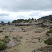 到了轿子山景区,还得排队等候景区大巴,景区大巴差不多30分钟,盘山公路到乘坐缆车沿途有很漂亮的杜鹃花。排队坐完缆车开始正式爬山。上下4个小时,海拔最高4223,难度2颗星,纯粹就是风大。在骄子山顶风很大,要注意好防护。