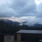 3.“天然居客栈”不错(我们住的标间: 128 只剩那个了 所以你们还是提前订吧) 老板热情 在店里吃的晚饭(跟一对情侣拼桌 平均120/2人吧) 第二天有早点 吃完早点直接送上雪山景区 防滑防水鞋套 手套都可以直接在他家买 建议买大一号 不然穿不进去(买错鞋码的我 很内疚很内疚)也可以住在雪山上 比较贵而已 下图:从客栈看雪山