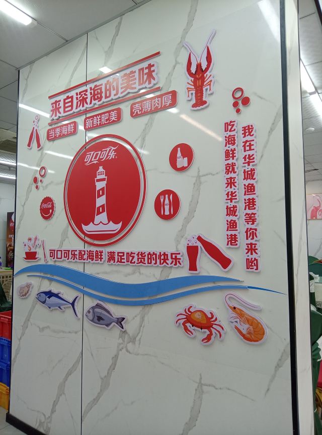 主打卖点是当季海鲜,强调新鲜肥美、壳薄肉厚,还搭配可口可乐,主打“满足吃货的快乐”的用餐体验。