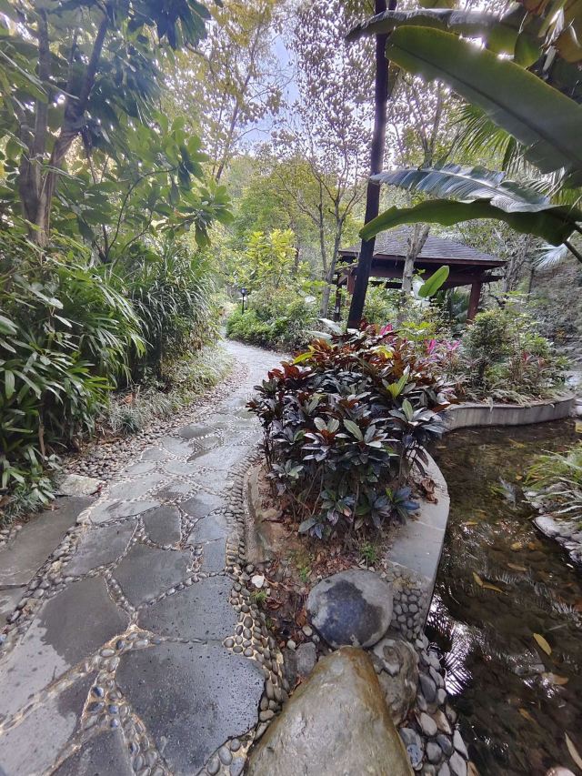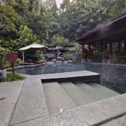 汤泉位于惠城区小金口镇内,毗邻惠州大道,以温泉、冷泉、瀑布三位一体而著称。该区域隐匿于三面环山的泽谷中,拥有终年不竭的温泉水,仿佛汨汨涌出的液体金矿,自古以来就是远近闻名的温泉沐浴场所,大文豪苏东坡曾为汤泉留下了“汤泉吐艳镜光开,白水飞虹带雨来”的溢美之词,丝毫不为过。