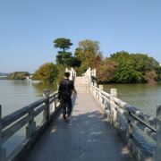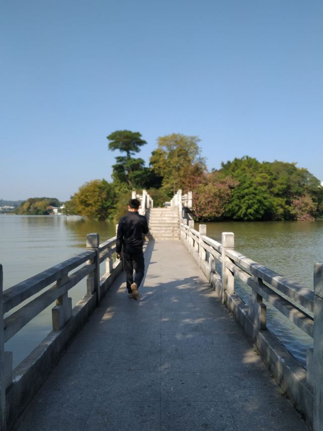 4分 满意进去不用钱,位于惠州西湖中的一个小岛,从环城西路的桥廊进去,里面绿树成荫,可以环顾西湖景色。