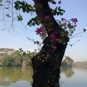 百花洲在西湖明月湾附近,与长桥相连。明正德年间甘公亮为惠州太守时,在州上建落霞榭,落霞榭屡经修建,临四壁窗户眺望,更可尽览湖光山色。新辟花廊,广种名色花卉,并陈列名贵奇花异木,盆景婷婷玉立,不似花洲胜于花洲。