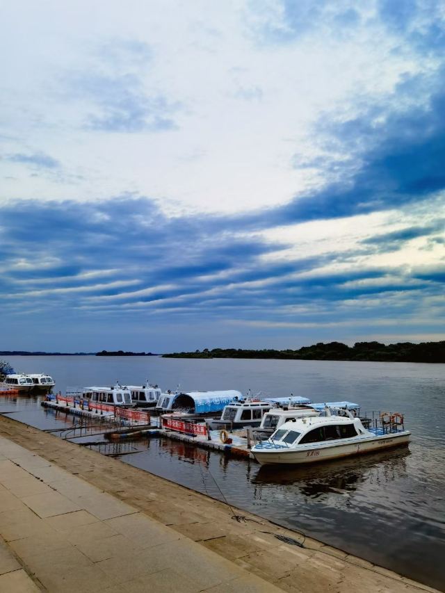 5分 超棒中俄分界线,在这里可以清晰的看见江内有明显的分界,一面江水清澈一面江水浑浊,可以在这里乘船在国内的江上游览,俄罗斯那边多为树木,国内这边已经算是游览的地方了