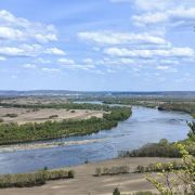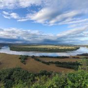 4分 满意鹿鼎山坐落在呼玛河畔,山的北侧是百米绝壁,有栈道可以下到河边,站在绝壁之巅远眺,蓝天白云下是连绵起伏的群山,绿绿的看不到边,远处的呼玛小城清晰可见,呼玛河从北面而来,在这里划了一道完美的弧线后向东流去。