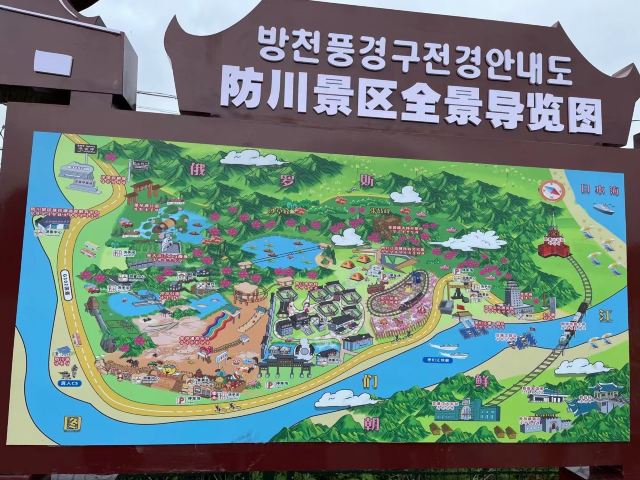 防川风景区东面是俄罗斯的边境路小站包得哥尔那亚,西南面隔图们江与朝鲜豆满江市相望。俄朝的这两个城市由图们江上的一座铁路在桥相连接,是联结俄朝陆路贸易的唯一纽带。从防川风景区沿图们江而下,15公里即进入日本海,可成为中国、俄罗斯、日本、朝鲜半岛乃至东北亚国家和地区进行贸易的“海上丝绸之路”。