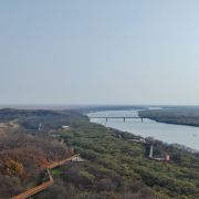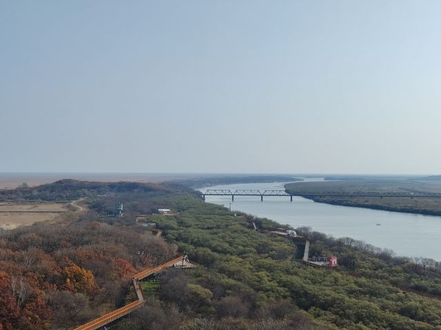 往防川村前数公里便是1886年由清政府钦差大臣会同沙俄代表临立的“土”字界碑。从这里到图们江口只有15公里,可以远眺日本海,登上附近山包上的瞭望塔,远处那雾气蒙蒙的日本海连着天际;近处中朝俄三国的景致尽收眼底,左侧是俄罗斯的边城包德哥尔那亚,右侧隔江则是朝鲜的豆满江市。