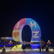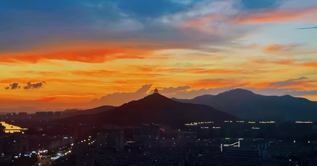傍晚时分,渔人码头的木质栈道被染成暖橘色。夕阳悬在太湖边际,将浩渺湖面熔成一池流金,波纹荡漾间似千万片碎琉璃浮动。对岸的月亮酒店(俗称“马桶盖”)率先亮起霓虹,弧形轮廓倒映水中,与霞光交融成双月共舞的奇景。沿湖餐厅飘来湖鲜香气,点一盘“太湖三白”,银鱼蒸蛋的嫩白与窗外绯色云天构成绝妙撞色。行至静山夕阳观景处,石堤灯塔的红白条纹浸在暮光里,古码头沉默伫立,余晖为归航的渔船镀上金边,恍若穿越千年渔歌唱晚的时空。