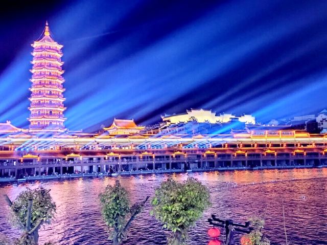 夜幕彻底垂落时,太湖古镇瞬间苏醒!万佛塔通体流金,飞檐斗拱缀满彩灯,倒映在运河水道中如一条坠落的银河。挤过摩肩接踵的人潮,冲向龙之梦国际会议中心前的草坪——这里是免费观赏“双秀”的VIP席!先看打铁花:赤红铁浆泼向夜空,触水刹那迸裂成金色花雨,与湖面倒影交织成上下对称的火树银花;紧接着水舞秀登场,喷泉随交响乐腾跃,水幕投影出青花瓷纹与白鹭翩跹。当21点的钟声敲响,高空烟花轰然绽放,七彩光瀑倾泻而下,人群的惊呼与古塔钟鸣在耳畔交响,仿佛置身大唐上元灯会的盛世狂欢。