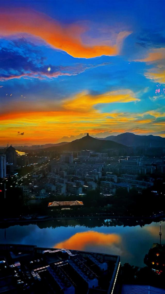 5分 超棒🌅 暮色熔金:太湖晚霞的诗章
