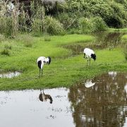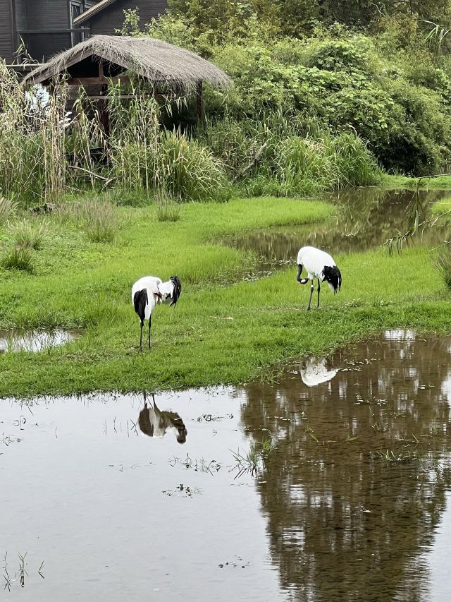 湿地公园:里面生活着好几种野生鸟类,其中有斑嘴鸭、绿头鸭、白鹭、蓑衣鹤等。