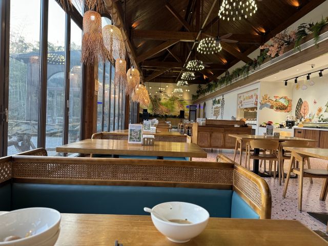 长颈鹿餐厅:餐厅更贴近于回归大自然的感觉,大家在景区内用餐可以选择这里,因为不但能与长颈鹿共进早餐,还提供丰富多样的早餐品种。长颈鹿自助餐厅内大约能同时容纳160多人、儿童餐厅大约能同时容纳60多人、湖畔酒吧大约能同时容纳60多人,并且餐厅内有颇具特色的台湾自助烤肉。