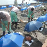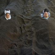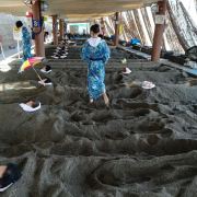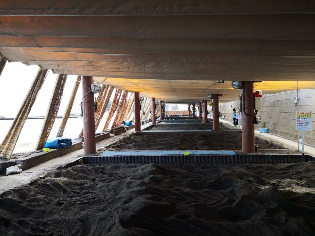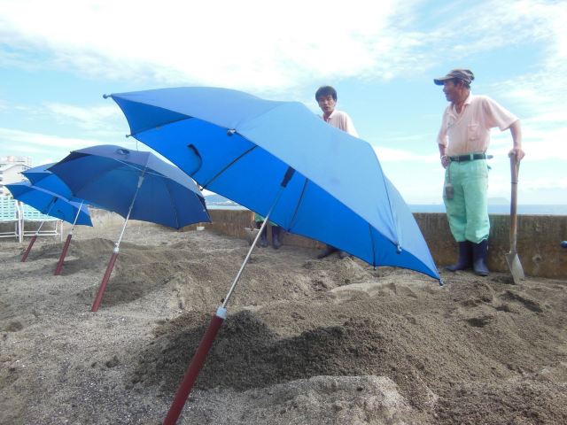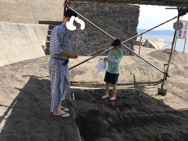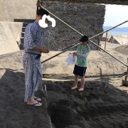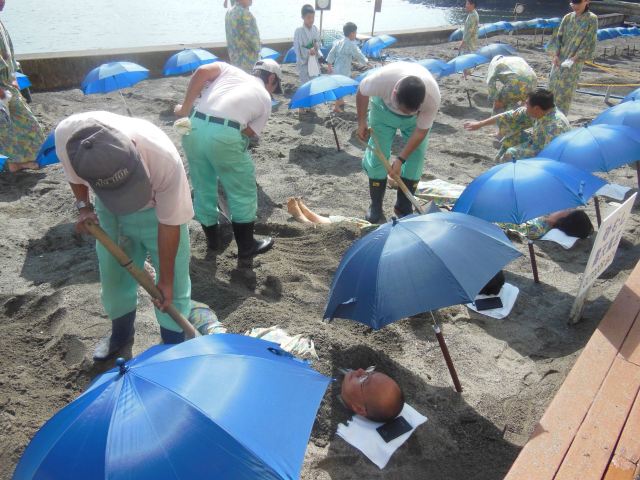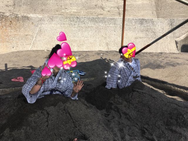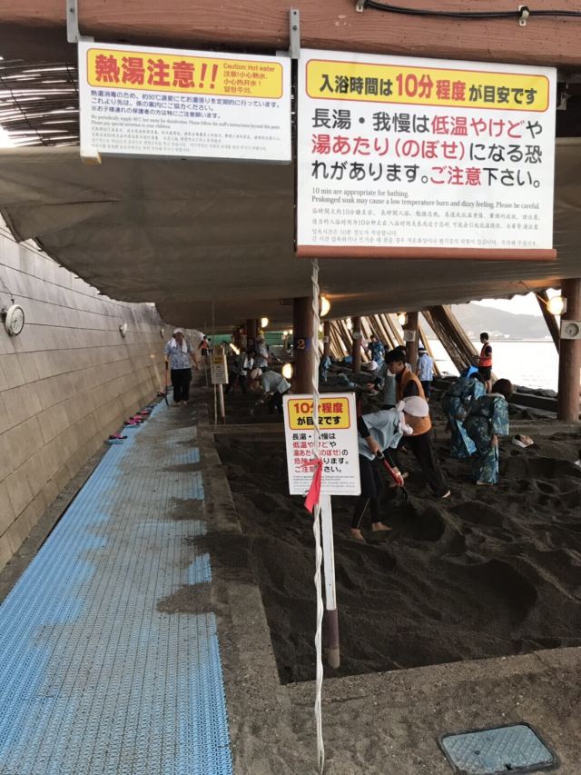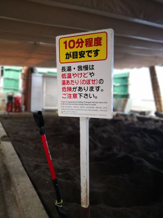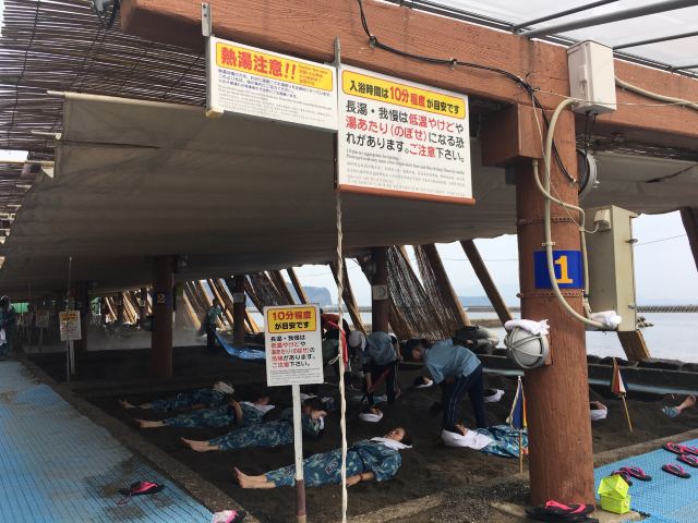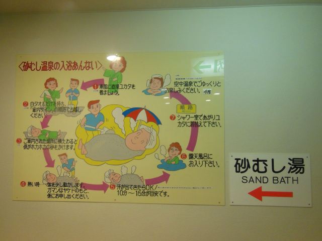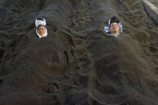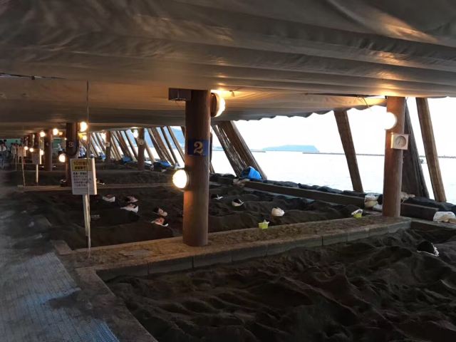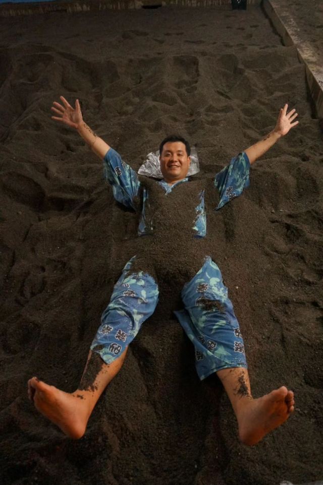 指宿是天然沙浴地,利用温泉的天然热度,加上钠盐化砂本身的重量,产生温热的刺激,因此能做特殊沙浴。