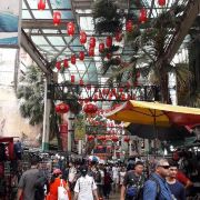 在这里会有一种错觉就是回国了,随处可见的中国元素,有中式牌楼、楼宇、售货摊等。