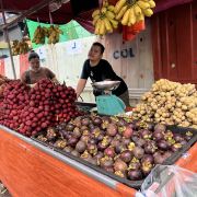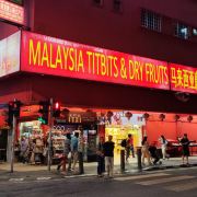 很多中国商店,卖各种各样的东西,还有金铺,华人香料,土特产等。晚上会把很多摊位摆出来就会很拥挤了,各种水果、价格适中,还买了很好喝的豆浆还有好吃的姜糖豆花。还有猪肠粉及酿豆腐、糖不甩、猪杂粥、卤鸭、云吞面等。