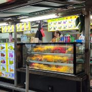 走着走着感觉肚子空空,看见一家菜馆,有叉烧、烧肉、烧鸡、米饭,量不多,于是点了两份。