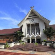 建于1974年,可容纳大约8000人同时祈祷,最令人瞩目之处则在于其层叠的伞状屋顶。