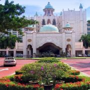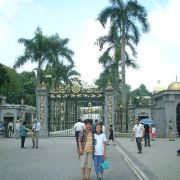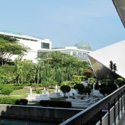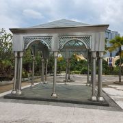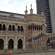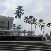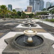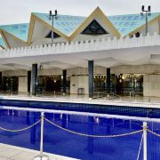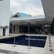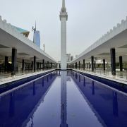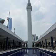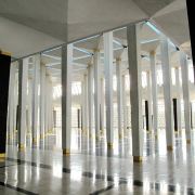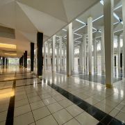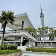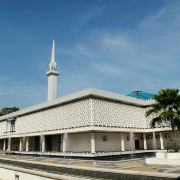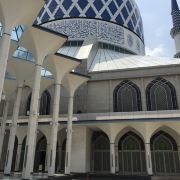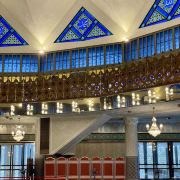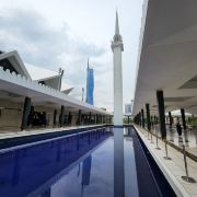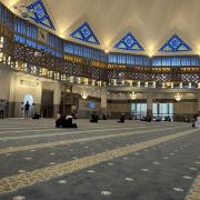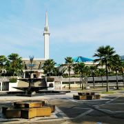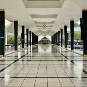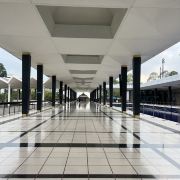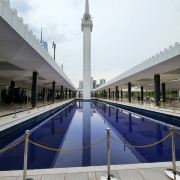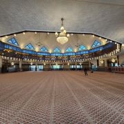 国家清真寺位于吉隆坡火车总站边上,寺内是个避暑的好地方,寺内虽然无空调,但比室外要凉快很多。进入祈祷大厅前要经过一个宽阔的厅堂,该厅堂左右设有宽大的走廊,光脚踩在地板上凉凉的非常舒服,你也可以坐在走廊旁边的喷水池边消暑,静静的冥想片刻。如果你是租借了长袍,那么在这里拍照留念也是不错的选择。