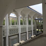 在国家清真寺的后面建有造型优美的陵墓,清真寺和陵墓之间有万桥廊相通。