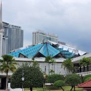 5分 超棒国家清真寺是世界著名的清真大寺、东南亚地区最大的清真寺,也是伊斯兰建筑艺术的杰出代表。游客可以免费参观,只是女性需要换上紫色长袍,长袍也不需要任何费用,进入时必须脱鞋。 国家清真寺建筑造型优美,外观与装饰为阿拉伯伊斯兰建筑形式和现代形式相结合,在这片巨大的建筑群中央,点缀有水池和喷泉。最令人瞩目之处在于其层叠的伞状屋顶,象征一个独立自主国家的雄心和抱负,同时,打伞保护着虔诚的教徒,顶部由中间向四周分散,在边沿处形成18个尖角,象征着马来西亚13个州和回教的5条戒律。73米高尖塔直指蓝天,精致巍然,塔内设有电梯和楼梯通向顶端,设计成火箭尖部的尖塔意在象征伊斯兰教可与科学相媲美。陵墓建在清真寺后,有桥廊相通。这里是吉隆坡回教徒常去的主要祈祷的场所,可容纳8000人同时祈祷,也是马来西亚伊斯兰教活动中心。 清真寺分为祈祷大厅、教堂、尖塔及教堂办公大楼等四个主要部分,有一种轻灵端庄的气派。宽阔的祈祷大厅里,金色的水晶大吊灯从屋顶垂下,照耀着屋顶下色彩斑斓的玻璃,但非穆斯林不能入内,外面的柱状大厅也非常有意思,我们看到有回教徒对着柱子祷告。 开放时间:09:00-18:00,星期五14:00-18:00,星期天及节假日休息。