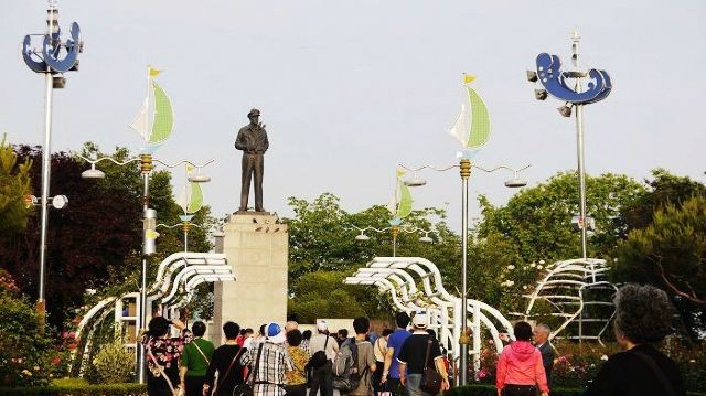 4分 满意自由公园坐落在仁川广域市中区松鹤洞应峰山上,初期曾被称为万国公园,后也被日军叫做西公园(与另一座日军用作神社的东公园相对应)。1957年10月3日,公园内竖立起指挥仁川登陆站的美国麦克阿瑟将军铜像。