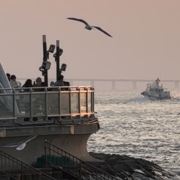 从月尾岛还可随时乘坐游船环游四周美景。凉爽的海风,清澈的西海海水,还有盘旋于上空的海鸥,一切都让人沉醉。