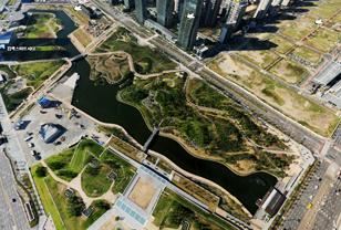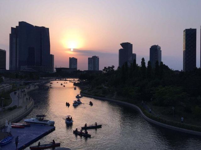 中央公园位于松岛国际新城,是占地约40万平方米的绿色休息空间。公园里的人工湖形如韩半岛,1.2公里长的海路上为游客开设了12人座和32人座(周末)的水上的士。需要乘坐的游客可提前预定,也可在当天按照先来后到顺序乘车。