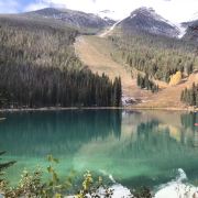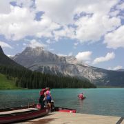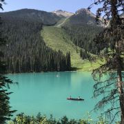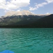 5分 超棒最后一站进入优鹤国家公园,翡翠湖是其中的精华,围绕湖有很多徒步路线,周边停车位如果停满,可以靠着路边停。这里划船性价比比路易斯湖高,一个船不超过三个人,每小时70加币。湖水很平静,没有鱼,大部分冰川湖和火山湖都没有鱼。