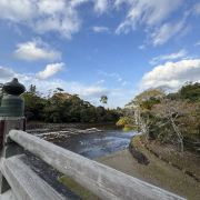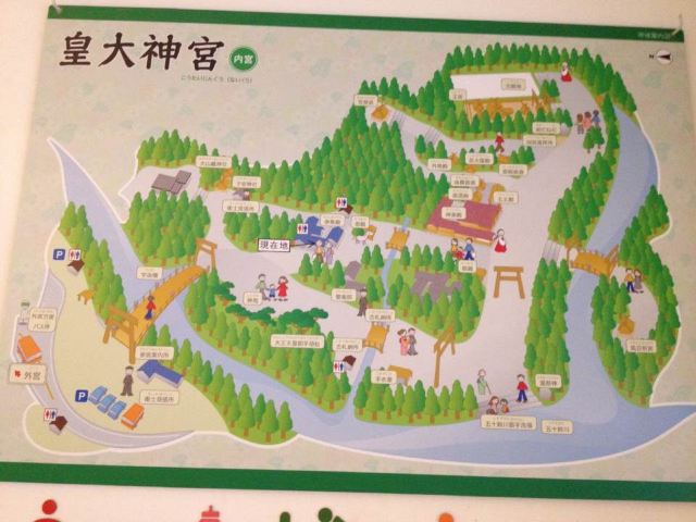 过了桥开始,穿过很长一段神道,就可以看到五十铃川岸边,在这里有各国各色的硬币。作为神川这条河的地位非常的高。内宫的本殿是20年一迁,本殿排队参拜的人非常多,但是整个规模还是属于比较古朴的。除了本殿还有神乐殿和神撰殿,里面可热闹了,基本上都是祝祷活动不断。还有神马的马厩,以前是白马,可惜里面的神马到了退休年龄,现在的马厩都是空的。