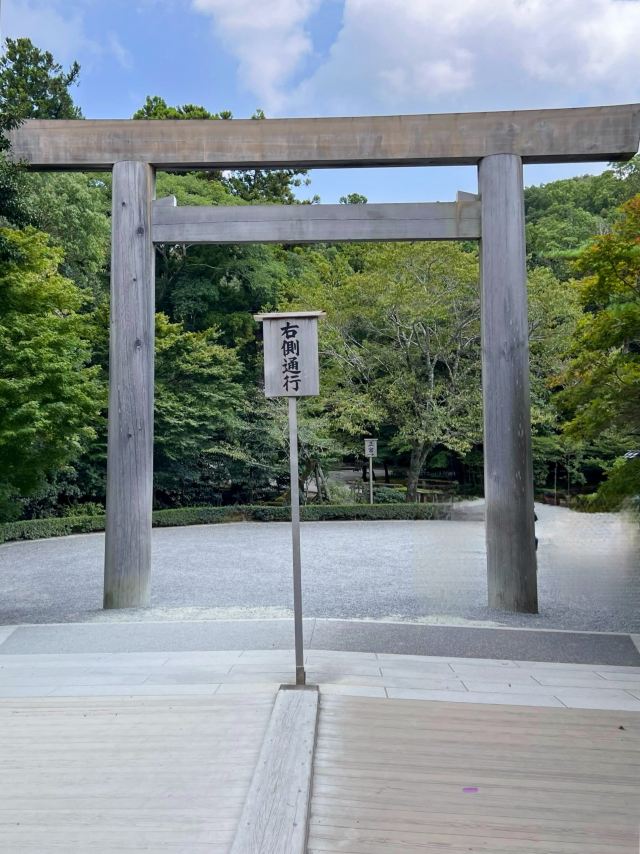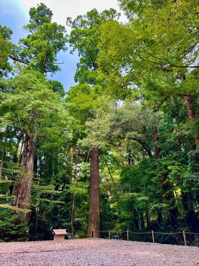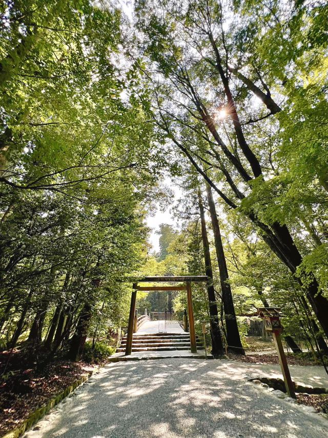 伊势神宫的内部被树木覆盖,我能够感受到大自然的力量🌲途中有一条河,有些人在用干净的水洗手后去拜访。